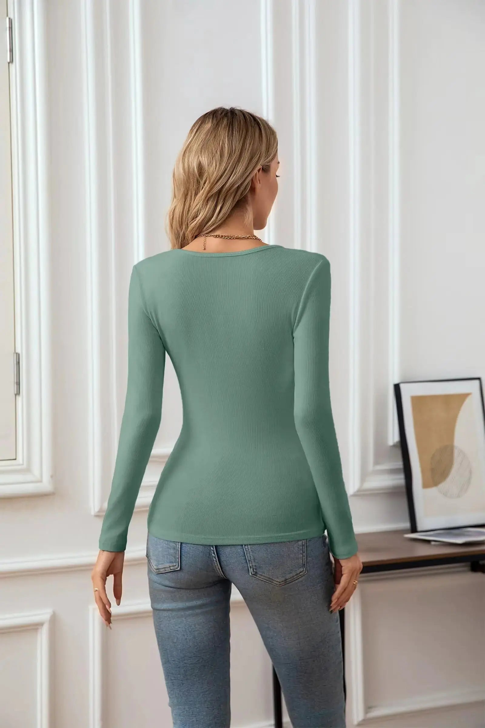 VICHYIE Summer Women's Scoop Neck Long Sleeve Shirts - Slim Fitted Casual Basic Top