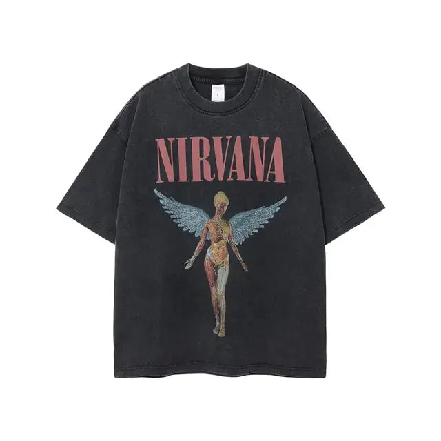 Step into retro style with vintage angel print grunge oversized t-shirts for men, blending nostalgia with contemporary fashion.