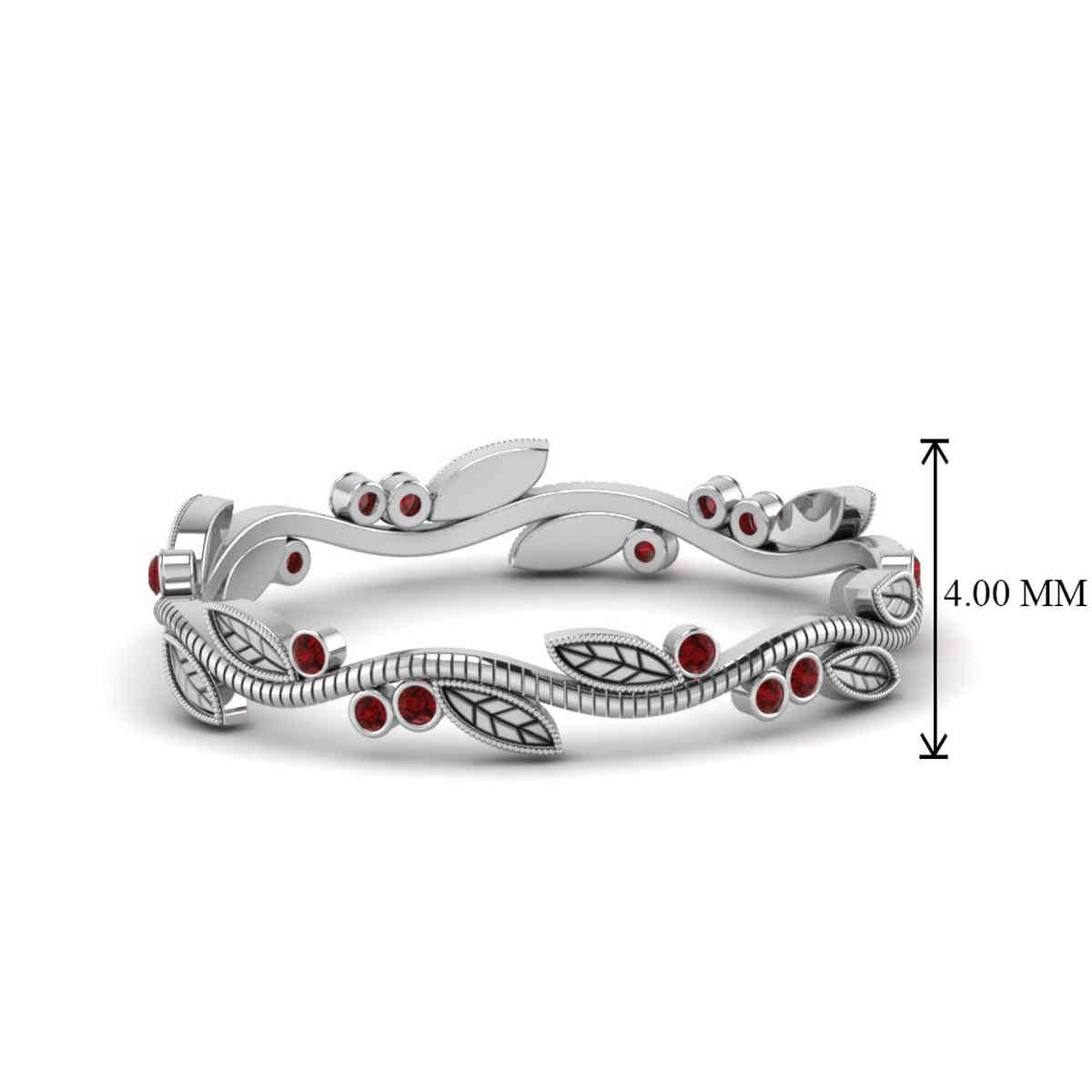 This Vintage Ruby Promise Ring expresses a Nature-Inspired Design with its intricate Detailing of Leaf pattern embedding dazzling Round Cut Reb ruby stones in a Bezel setting which exhibits the true essence of nature beautifully.