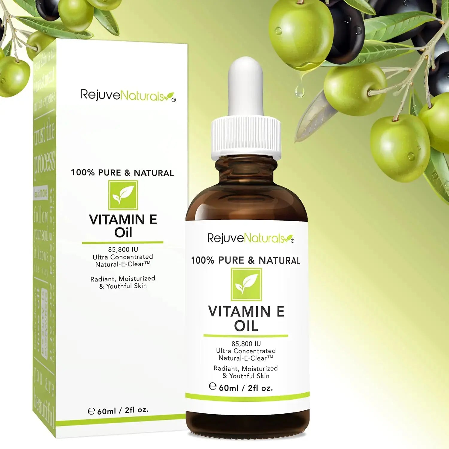 Revitalize your skin with our Vitamin E Oil, 100% pure and natural, packed with 85,800 IU of d-alpha tocopherol. Perfect for repairing dry, damaged skin from acne scars, surgery, age spots, and wrinkles. Boost collagen and achieve moisturized, youthful-looking skin every day!
