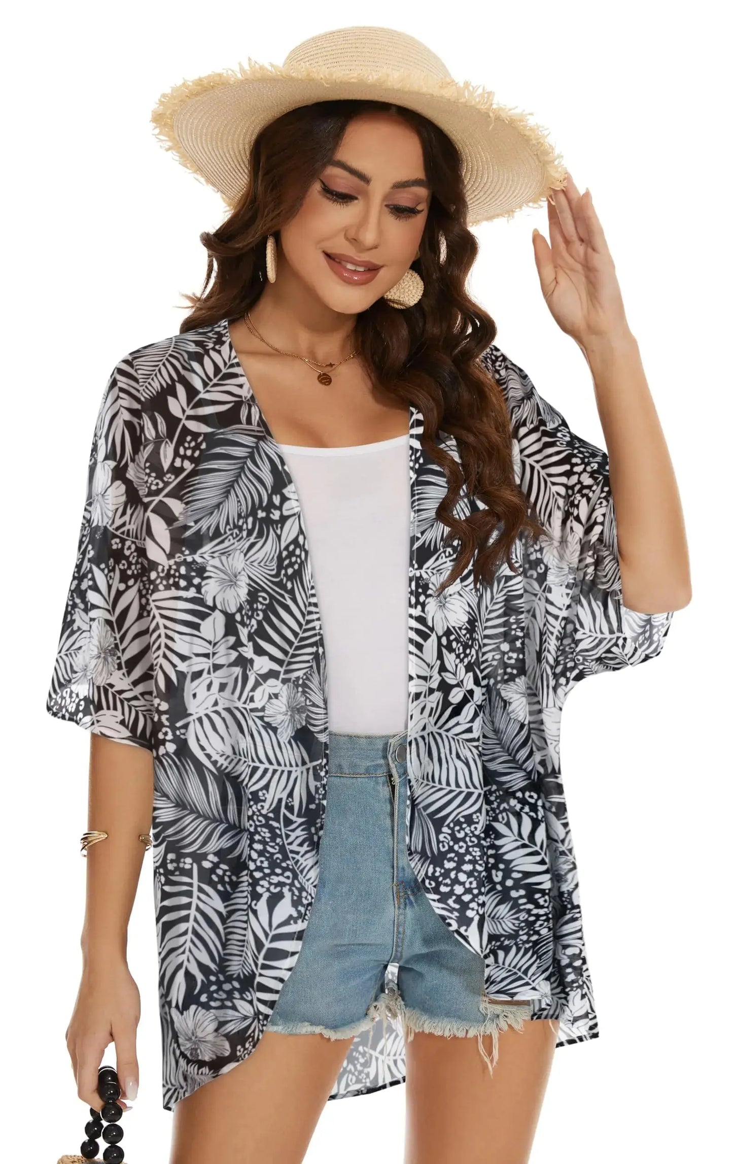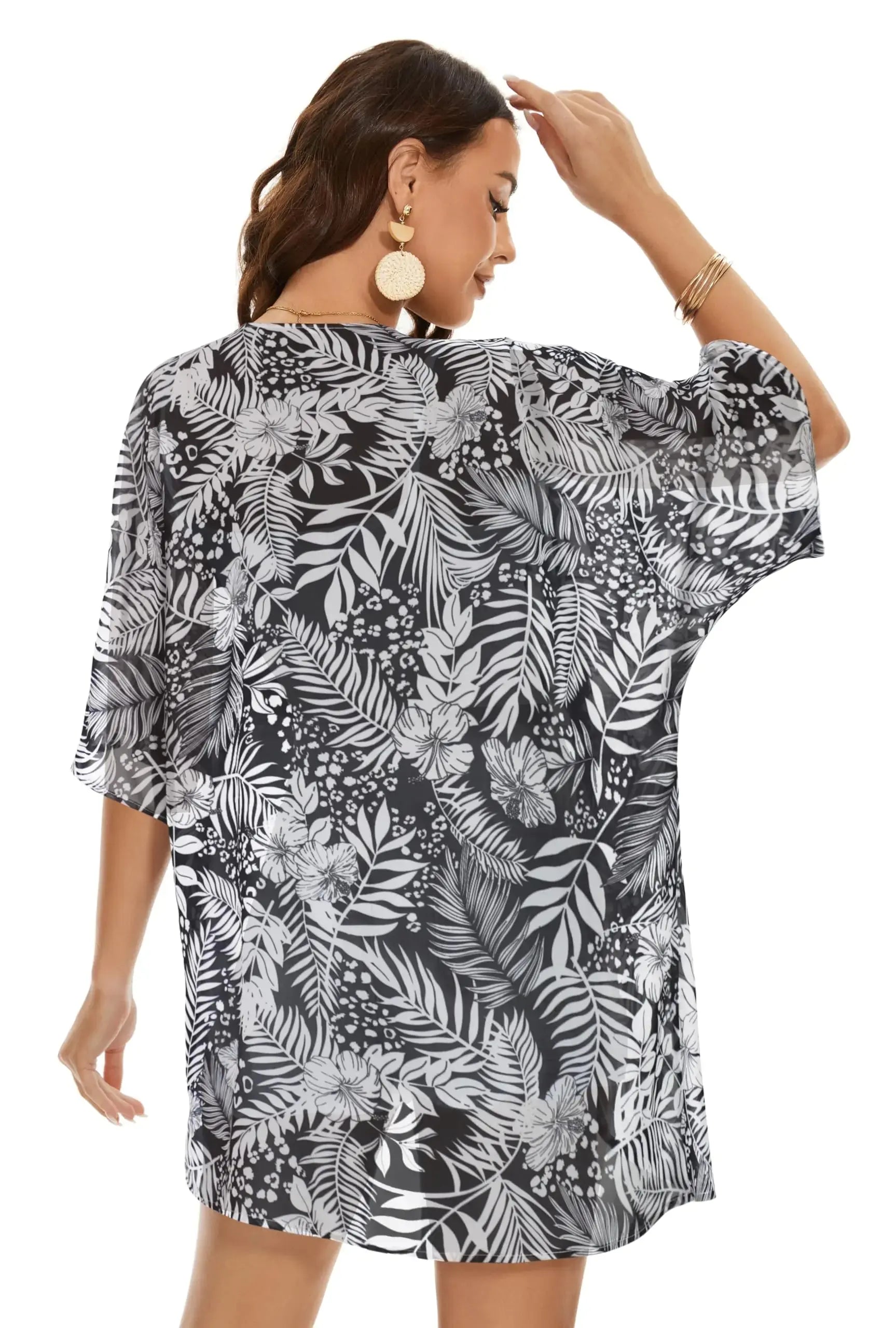 Womens Kimono Beach Cover Up Chiffon Cardigan Floral Tops Loose Capes XX-Large White Leaves