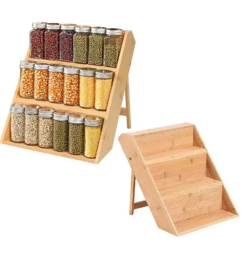 Organize your kitchen, bedroom, or living room with this 3-tier wooden spice rack. Designed for long-lasting use, it offers a stylish and functional solution for storing spices, seasonings, perfumes, and more. Its expandable design ensures it meets your storage needs, making it an essential addition to any home.