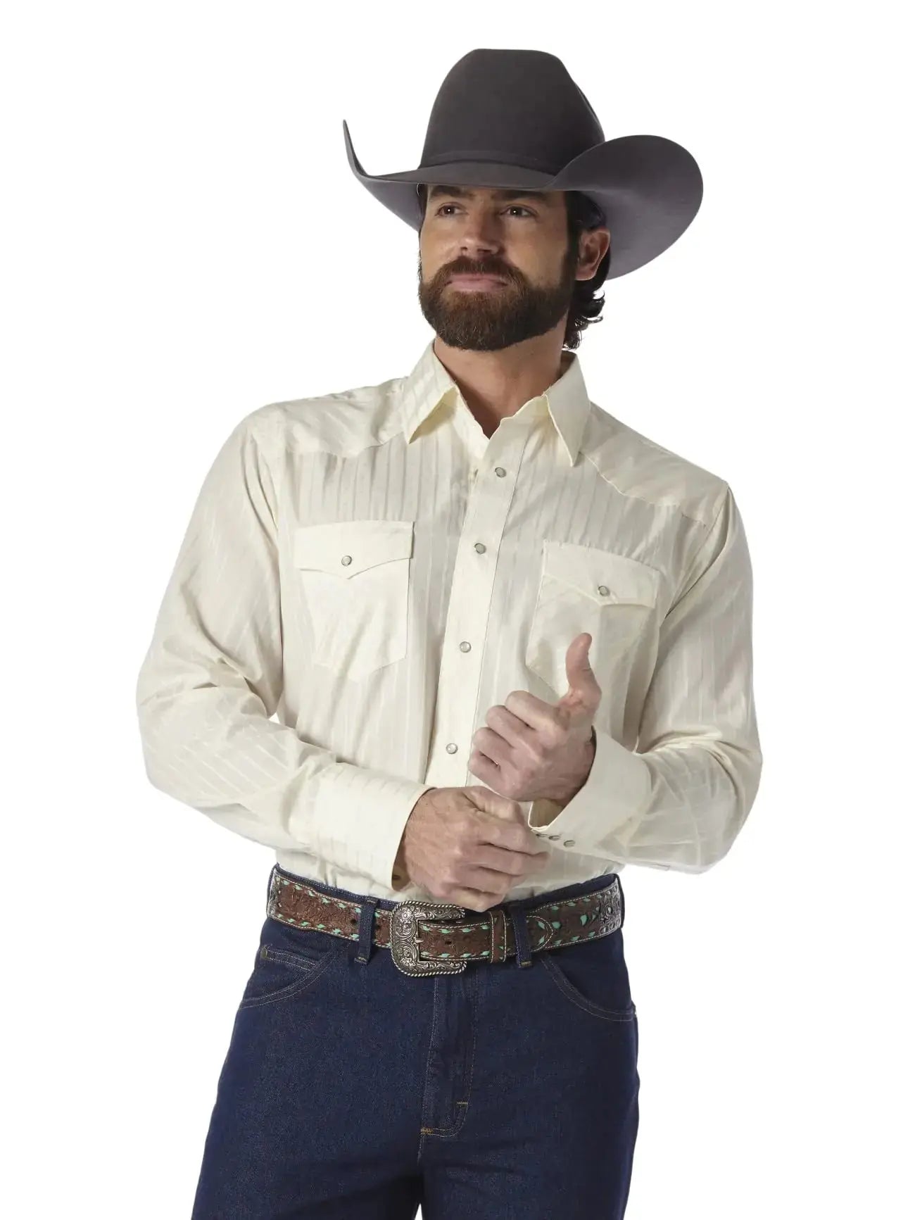 This Wrangler shirt offers timeless style and lasting comfort. Perfect for any cowboy or western enthusiast, it's a must-have for your wardrobe.