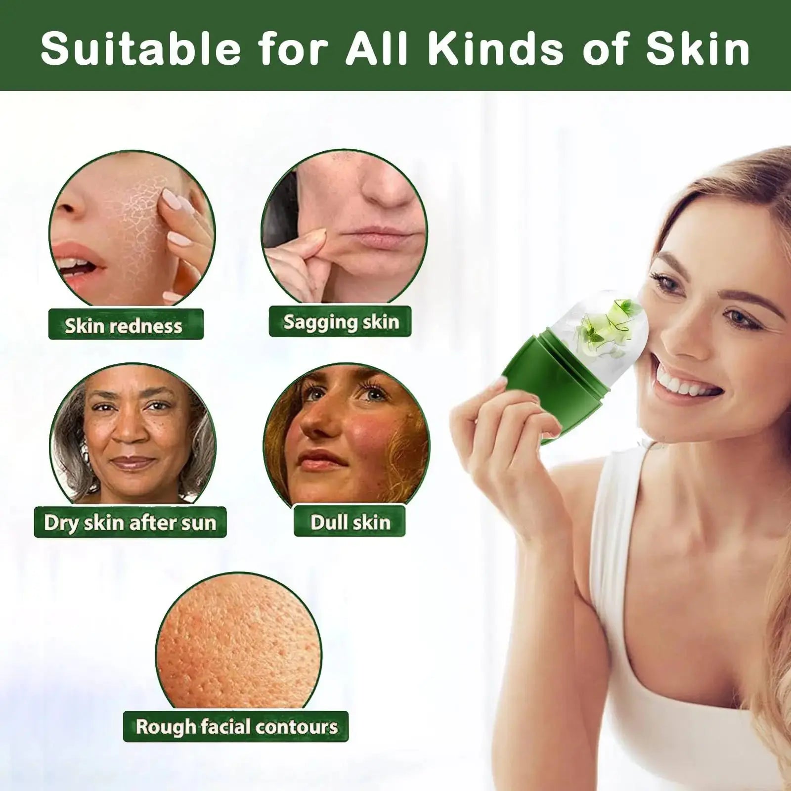 Revitalize your skin with the XHJRI Ice Face Roller Massager. Perfect for soothing facial tension, reducing puffiness, and alleviating migraine pain, this reusable silicone ice mold offers a cooling experience for your face, eyes, and neck. Say goodbye to under-eye bags and hello to refreshed, radiant skin.